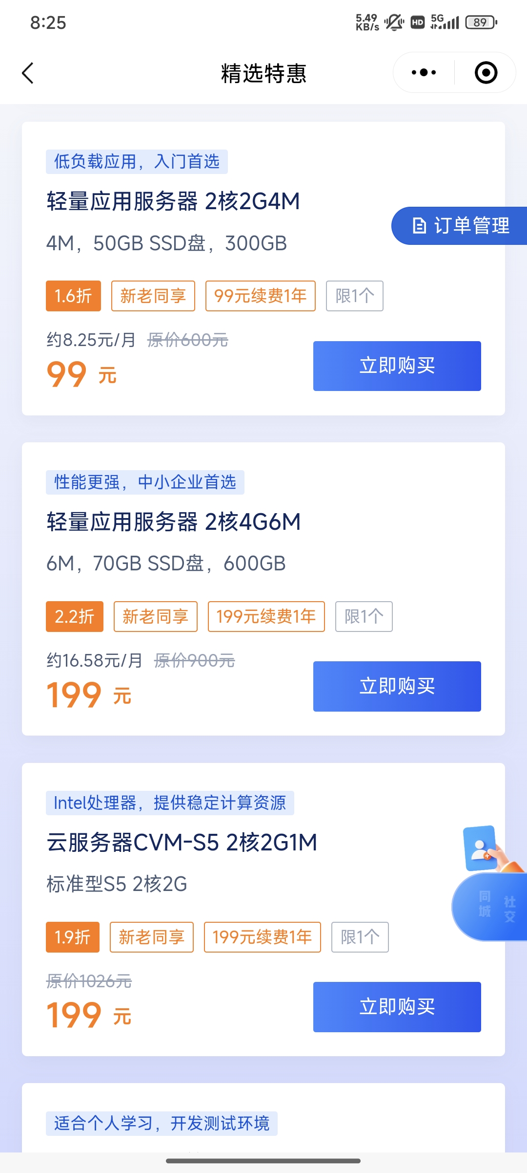 这个2h4g的,我本来也想买的